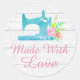 Handmade With Love Sewing Machine Rustic Wood Classic Round Sticker