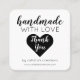 Handmade With Love Simple White Black Heart Square Business Card