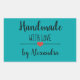 Handmade with love teal script name rectangular sticker