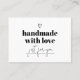 Thank your customers with these cute "Handmade With Love" cards. Your business name, website address and room to write a personal note on the back.
