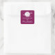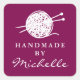 Handmade wool knitting thread bundle logo custom Square Sticker. Elegant template with ball of yarn and needles. Red or custom color background. Classy DIY label stickers for hand made clothes, scarfs, gloves, art, toys, artisan accessories and more.