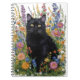 Handpainted Black Cat & Floral Embroidery Art Notebook