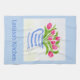 Hand painted Watercolor Tulips in a Blue Stripe Cornish Style Pitcher, printed on a kitchen towel. PERSONALIZE IT !