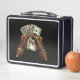 This is a standard metal lunchbox that appears to work just fine. We designed this box ourselves with an uploaded photo and custom text on the front and back. It looks absolutely beautiful except the front of the lunchbox is not centered like it shows in the photo. The print borders don't align with the inset flat part of the box where the preview photo online showed it perfectly centered in there. The back looks nice and centered though.