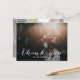 Simple, elegant, minimal photo overlay handwriting script design for your wedding thank you cards with two photos, one on the front and a second photo on the back. Send out your wedding thank you message as newly weds to your friends and family using this beautifully, simple thank you wedding photo postcard with the words "thank you" written in a white handwriting script text overlay. Wedding Thank You Postcards with Your Photo. Design by Elke Clarke © . Replace the sample photo with your own. Add your personal thank you message on the back or leave blank and hand write your message in person. Other colours available.