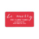Handwriting Be Merry | Holiday Address Label. Elke Clarke© Other colours and styles available in our store www.zazzle.com/monogramgallery. Red solid colour background white handwriting script font.
