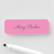 This badge looks professional and it's in keeping with my branding. The magnetic attachment is strong and stays in place all day. The quality of the materials and the colors were exactly as pictured. I couldn't be happier! The printing is clear and easy to read