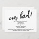 This suite's distinction is due to the modern, handwritten script font used for accent phrases. If you're in the position of needing to inform your wedding guests that you've had to change your big date, here is a humourous option. In this piece, the hand-lettered script font was used to create a graphic depicting "our bad!", large and bold. Use the template fields to add your personal details and make this unique, modern design your own. The white background can be changed to any colour you prefer. Please reach out with any special requests or for customising assistance. // 100 //