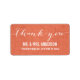 Handwriting Script Wedding Thank You Coral Linen Return Address Label. Design by Elke Clarke© for MonogramGallery printed by Zazzle. Send out your wedding thank you cards to your friends and family using this beautifully, simple label with the words "thank you" written in a white hand writing typography script text overlay with printed linen photo effect background. You can personalise with your married names and wedding date.. Other colours available.