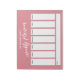 This is a perfect planner for busy families... easy to use and well organized. Each page rips off after use and the new page is ready for the next week. Clear print and personal monogram is fun.