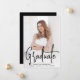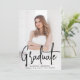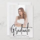 Modern graduation announcement featuring your vertical photo on the front with "Graduate" displayed in a handwritten black script overlay. Personalise the front of the photo graduation announcement with the graduate's name, school name, and graduation year. The simple graduation announcement reverses to display an additional photo with space provided to include the graduate's future plans, graduation details, etc. The 2 photo graduation announcement is perfect for both high school and college graduations!