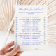 Quirky and whimsical 'Would she rather?' game card featuring blue handwritten font and fully customisable text.