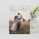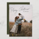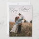 A handwritten Merry Christmas greeting on the front and Happy New Year on the back. Space for a single photo on each side of this design. A simple yet stylish holiday photo card ready for your personalisation. Designed by Lisa McLean Design.