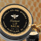 This apiary product label is fully editable. Personalize with your apiary name, location, product description and container size. Black circle on a honey-colored background and yellow-orange text. Heraldic honey bee illustration is a vintage medieval design.