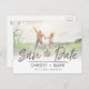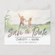 Pick the best picture from your engagement shoot or your favourite picture of the two of you for this perfect save the date. The words save the date are handwritten to give a personal feel to the postcard. Edit this save the date wedding card with your information and customise it for further for font and font colour options.