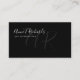 Your name and initials printed in a handwritten font style, with profession and additional contact information on an elegant black business card