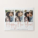 Handwritten New Year Copper Rose Gold Marble Puzzle in a font that is elegant and evokes a romantic handwritten feel. On the back is a trendy coppery rose gold foil style veins running through classic marble. Designed to use three of your favourite photos for added customisation.