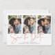 Handwritten Save the Date Copper Rose Gold Marble Multiple Photo Card in a font that is elegant and evokes a romantic handwritten feel. On the back is a trendy coppery rose gold foil style veins running through classic marble. Designed to use three of your favorite photos for added customization. Easily add your names and dates for a truly personalized design.