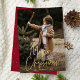 Modern holiday photo cards featuring your vertical photo with "Merry Christmas" displayed in a handwritten gold foil script. Personalise the foil Christmas photo card with your family name and the year in white lettering. The single photo holiday card reverses to display a burgundy background with subtle white dots.