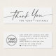 Elegant, white or any colour thank you for your purchase or business mini insert card with custom logo template. You can change colours, move and resize elements with the design tool.