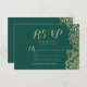 A modern elegant handwritten script lettering dark green and gold hand-painted floral mandala theme wedding RSVP Cards invitations.