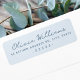 Dusty blue return address labels with your name in a handwritten style font and address and zip code below. You can change the background and font colour to any custom colour with the customisation tool.
