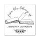 This lovely library book stamp features an elegant round form with the ´´from the library of´´ text in handwritten script and your custom name in simple modern typography with a hand-drawn leafy branch below. In the centre, there is a lovely illustration of an open book. Customise it via the ´´Personalise´´ button.