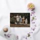 Modern holiday photo cards featuring your horizontal photo with "Merry Christmas" displayed in a handwritten gold foil script. Personalise the foil Christmas photo card with your family name and the year in white lettering. The single photo holiday card reverses to display an additional photo and a caramel-brown background with subtle white dots.