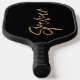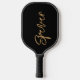 Modern personalised custom colour pickleball paddle for the left-handed pickler featuring a name shown in an editable modern, trendy handwritten script in changeable black and gold colours to create your own custom look for a pickleball enthusiast. COLOR CHANGES: Change any text or background colours by clicking on the EDIT tab in the PERSONALIZE section. ASSISTANCE: For help with design modification or personalisation, colour change, resizing, transferring the design to another product or if you would like coordinating items, contact the designer BEFORE ORDERING via the Zazzle Chat MESSAGE tab below or email makeitaboutyoustore@gmail.com.