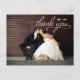 I love the ability to move and customize my own thank you lay out. I had great pictures from my wedding and loved the font "thank you" was written in. I have received many compliments on our thank you's and recommended them to Zazzle. Since we weren't sending these as postcards and just needed the writing space on back, I was able to upload an image with a watermark that went with our hangar wedding theme to cover up the "place stamp here" area. I just bought a box of envelopes and had 125 thank you's at a very cheap price. Turned out great! I loved the way the front was glossy and the back was maybe more of a semi gloss, not a dull paper, but was pretty good quality paper. I wrote with Sharpie pens on these as I was concerned if a pen would dent the paper. I was happy how my transparency/watermark turned out and was visible but not screaming "pay attention to me"