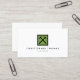 A logo of intersecting hammers in a green box is combined with your name or business name for a professional aesthetic on this business card template designed for handyman, carpenters, construction companies, etc. © 1201AM CREATIVE