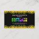 Design features a black cover with dripping yellow paint at the top and bottom of the card. At the centre are four placards that show some of the expertise that you have. The leaf is for landscaping and gardening, the home is for projects to the house, the roller brush for painting and the hammer represents all the equipment that you will use. At the top lies your prestigious name and job title. The contact details are at the base of the card.