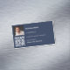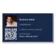 A navy blue background. Personalise and add Your photo, name, text, contact info and your own url to your website or your social media account to the QR code. White text.