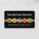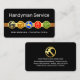 An all black cover is accentuated by a gold layer that has gold handyman tools icon resting on it. The tools can represent some of the services that you offer e.g. the hand drill-measuring tape can represent carpentry-home repairs etc. Its usage is left to your own interpretation. At the top is the business name "Handyman Service" which you can change with your prestigious name near the base of the card.