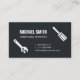 A business card with silhouettes icons of useful handyman tools which include screwdriver, spanner and wire cutter. Classy black and white colour palette. Personalise with your business information in the text templates provided.