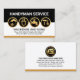 A black and white layered cover is encapsulated by a brown stripe near the base of the card. Over at the top you have an array of gold handyman tools which can represent some of the services that you offer. Just above this is the job title "HANDYMAN SERVICE" which you can change. Near the base of the card lies the business name and its contact details.