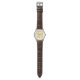 I was uncertain about the size being too small but it looks good. The case looks like aluminum (not shiny) and the time is easy to see. I changed the band because the leather doesn't go with my lifestyle.a. Exactly what I expected, nice yellow. It grabs peoples attention.