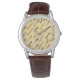The watch looks really great!  Very sharp and well done. The leather band is really nice, though for a man's watch I think it should be longer. Unfortunately, it isn't big enough for my husband's wrist but I will get a replacement because he is very excited to wear it!
