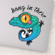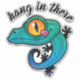 Colourful cartoon gecko licking his eyeball with the phrase Hang In There. Keywords: lizard, eye, animal, cute, cartoon, gecko, reptile, tongue, inspiration, inspirational, motivation, motivational, help, advice, hang