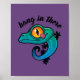 Colourful cartoon gecko licking his eyeball with the phrase Hang In There. Keywords: lizard, eye, animal, cute, cartoon, gecko, reptile, tongue, inspiration, inspirational, motivation, motivational, help, advice, hang