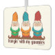 Hangin' With My Gnomies. 3 different coloured gnomes hanging out. Parody / spoof of Hanging with my homies. 3 gnome images.