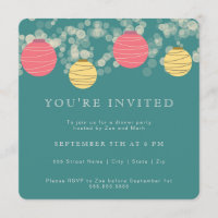 Yellow Hanging Paper Lanterns Wedding Invitation