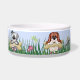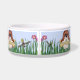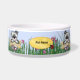 Cute whimsical puppy dogs holding onto big dog bones with fun butterfly, and dragonfly fluttering around the tall grass and flower garden setting. Name tag area at front of dog bowl is ready for you to customise. Matching Dog Treat Jar available in my store.
