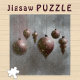 Relaxing Puzzle - Hanging Copper Christmas Baubles on a grey background - This beautiful vivid handmade Painting shows a bunch of copper coloured Christmas Baubles shining and glittering. The main colours are copper, burgundy, mauve, grey, brown.