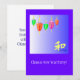 A beautiful invitation in shaded blue with five colour Chinese hanging lanterns across the top, and in the corner, the Chinese calligraphy for the word Harmony. This design makes an outstanding New Year's invitation, graduation party announcement, or just about anything! Add your own text back and front, in any font. Play with colours on the back, too. We've placed this one on purple, but play around and see what you come up with!