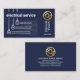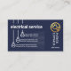 An all dark blue cover is accentuated by a creative blue hanging bulb design that accommodates all your card details. Above this is your oversize business name. Moving towards the top right corner is a gold power plug logo you can use with your prestigious name an job title just underneath.