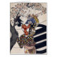 Hanging poems on a cherry tree by Ishikawa Toyonobu. Vintage Japanese Woodblock Art Print shows a woman, full-length, standing, hanging poems in a blossoming cherry tree. Ishikawa Toyonobu (石川 豊信 1711 - 1785) was a Japanese ukiyo-e print artist. He is sometimes said to have been the same person as Nishimura Shigenobu, a contemporary ukiyo-e artist and student of Nishimura Shigenaga about whom very little is known. A pupil of Nishimura Shigenaga, Toyonobu produced many monochrome "lacquer prints" (urushi-e) which reflected the influence of Okumura Masanobu as well. Many of these were yakusha-e (actor prints) and bijinga (images of beautiful women), including images of standing courtesans, whose faces conveyed an impassivity typical of the works of the Kaigetsudō school.