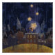 Decorate your home with a bit of whimsy with this original night scene painting of a girl standing on the roof of a brownstone in NYC with her dog hanging stars in a midnight blue sky digitally painted by an award-winning children's book artist. Anyone who loves fanciful paintings and New York City will enjoy this art on their wall.