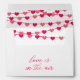 These elegant envelopes are perfect for adding a touch of glam to your mail. The design features hanging pink string love hearts with easy to personalise template return name and address wording. This design matches the "Hanging String Love Hearts" bridal shower collections but you can use these envelopes for all your mailing needs. View the collections for matching items.