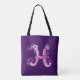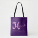 Pretty H monogram art name bag in shades of pink and purple. Personalise with your own name beginning with H, and name meaning for a truly personalised bag, this example is for the name Hannah Blessed with beauty poise and grace. © Unique H monogram hearts and flowers drawing description and graphic art design by Sarah Trett. www.sarahtrett.com for www.mylittleeden.com